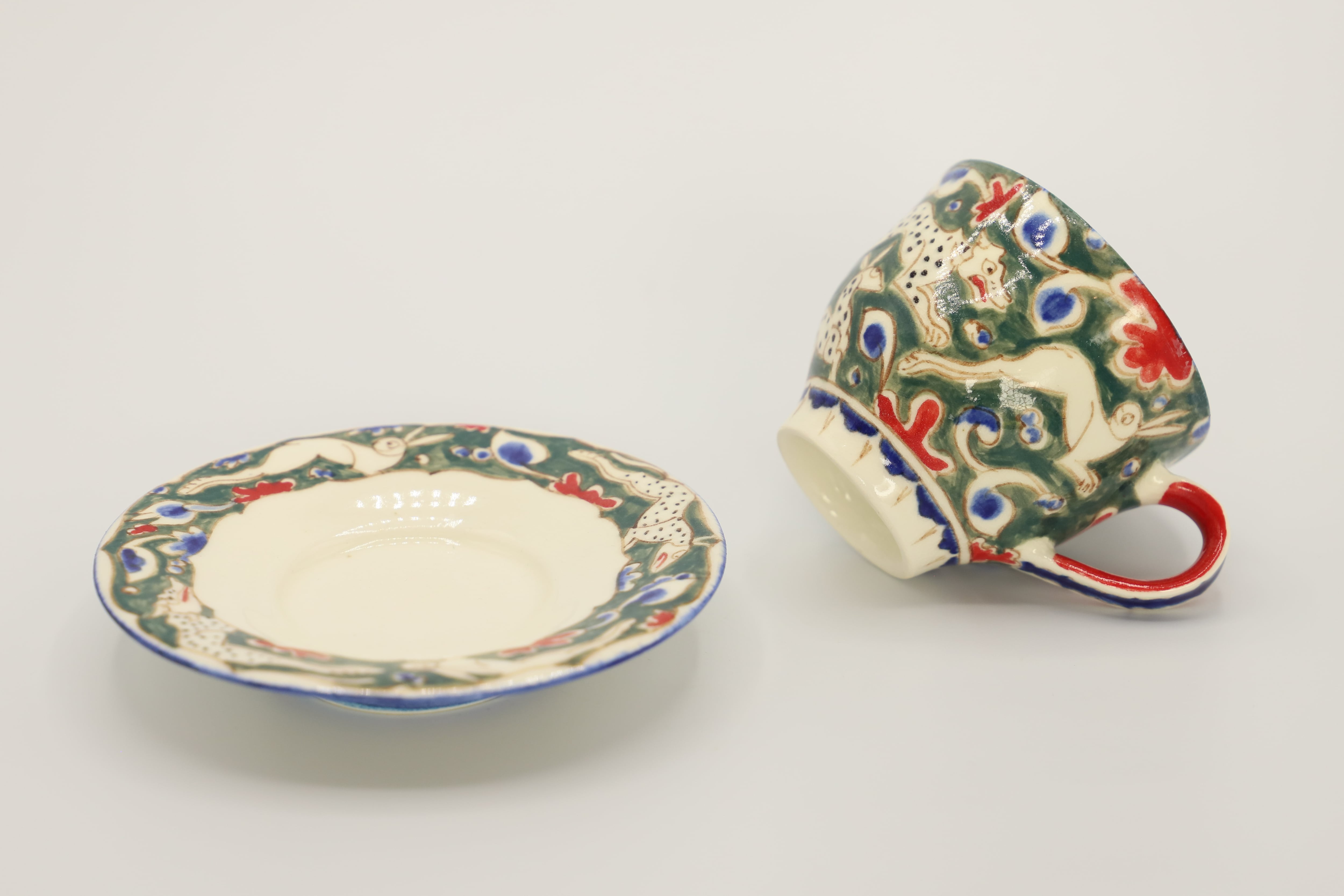 28 色絵ウサギ紋カップ&ソーサー