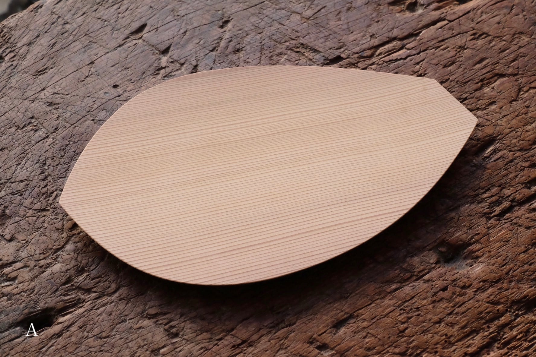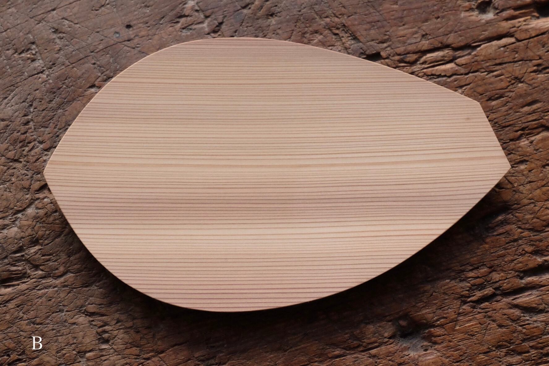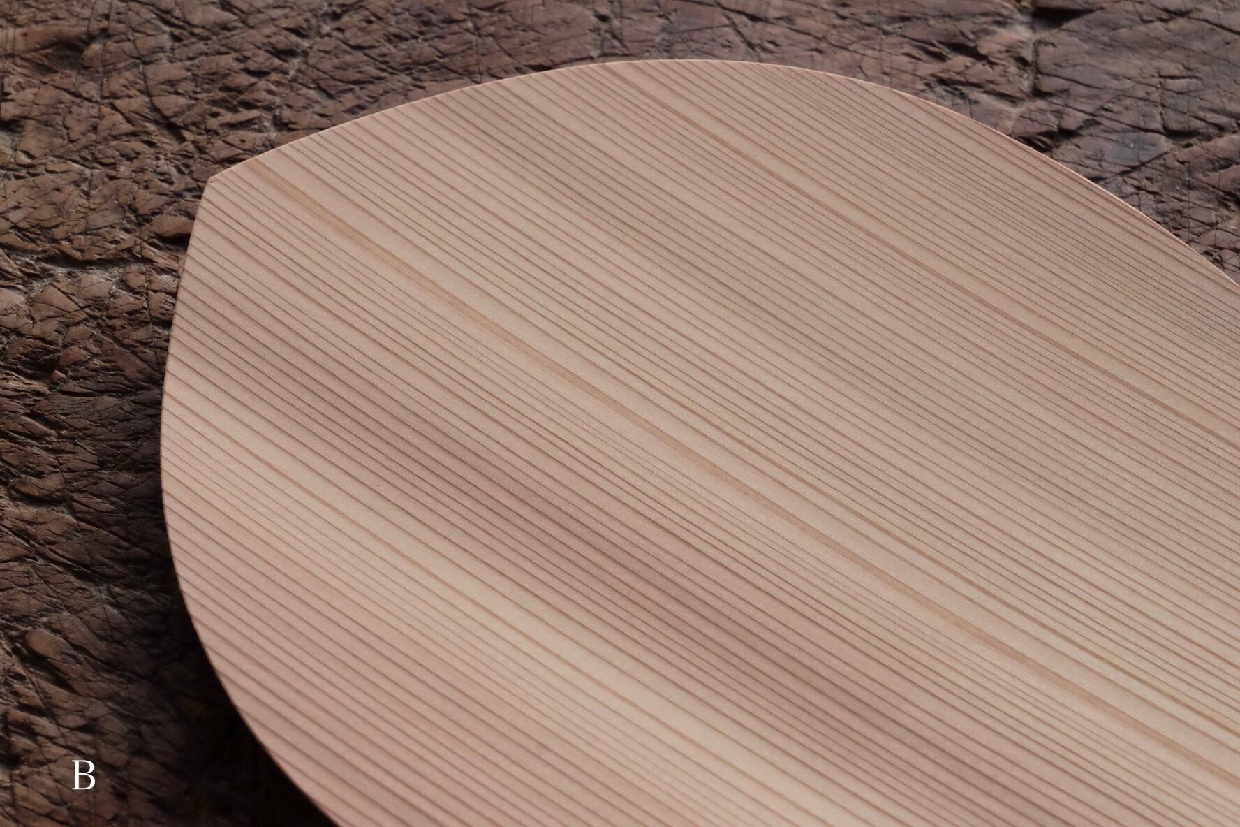 蓮の花弁が舞い降りたような軽やかなお皿は、杉が使われて木目が印象的です。