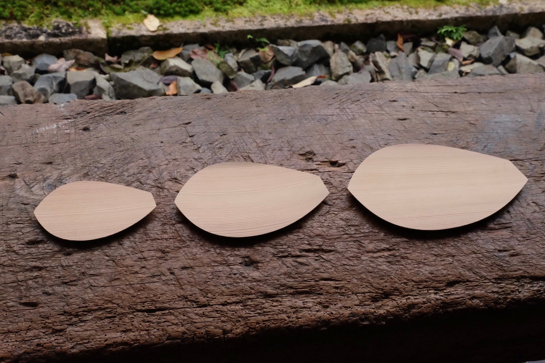 重ねた様子も何とも美しく、一枚一枚木目や色合いも異なります。
