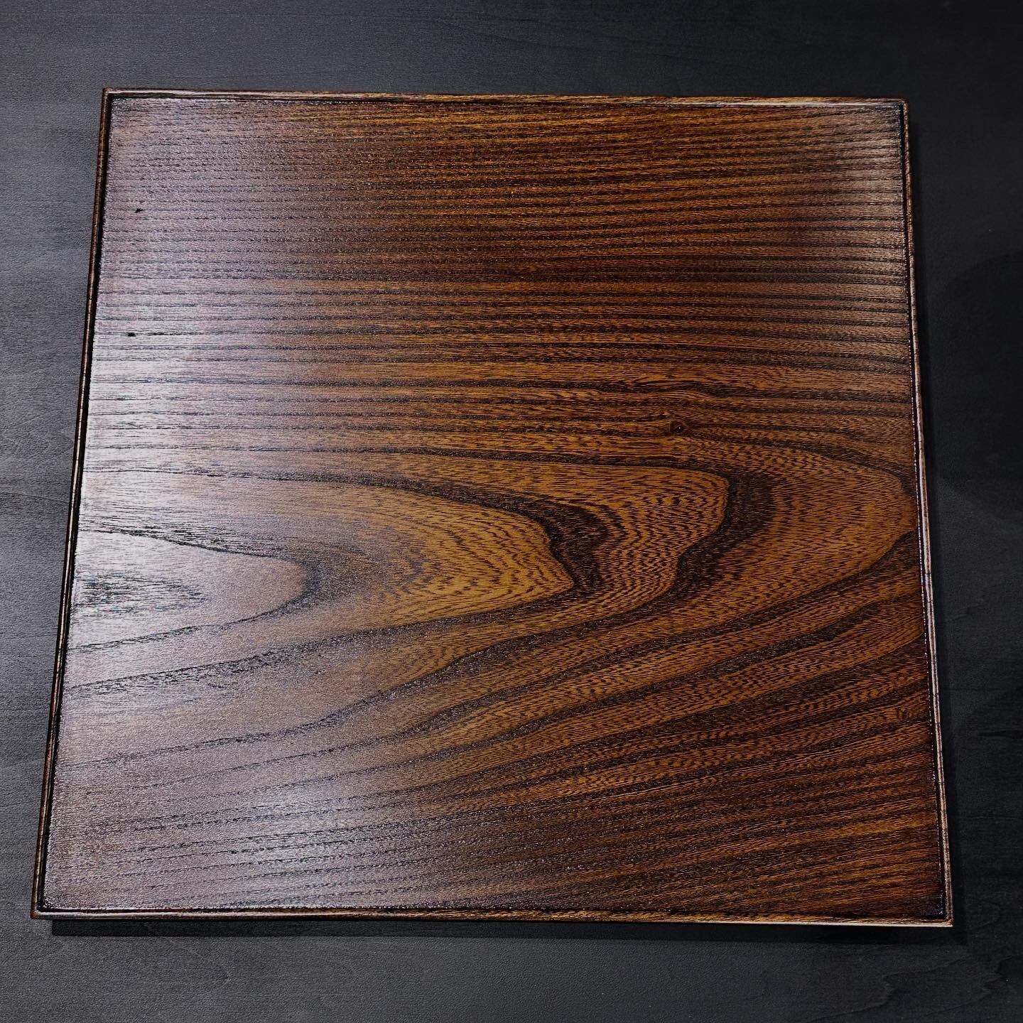木目が美しい四角盆は35cm角と大きめに作られていて、ご飯やお汁、主菜、副菜を乗せてもゆったりとゆとりある大きめのサイズです。