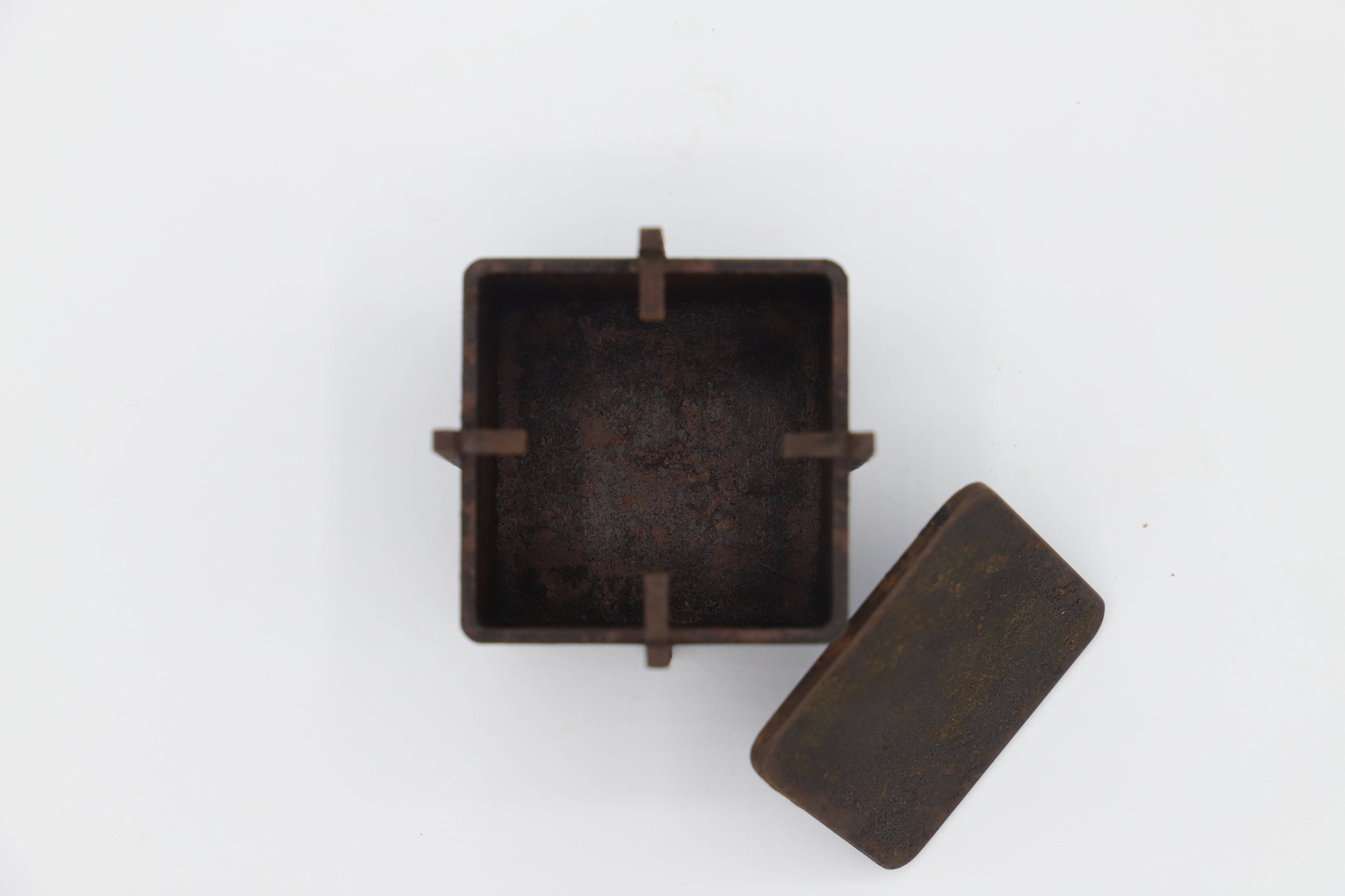 京都・木津川市在住で木と鉄を用いて制作される 浦辻靖弘さん作品です。 手のひらサイズの鉄製の香炉は、 表面を錆びさせており、スタイリッシュな形と錆の表情が美しい作品です。 品番:7 サイズ:5.5×5.5×h7cm